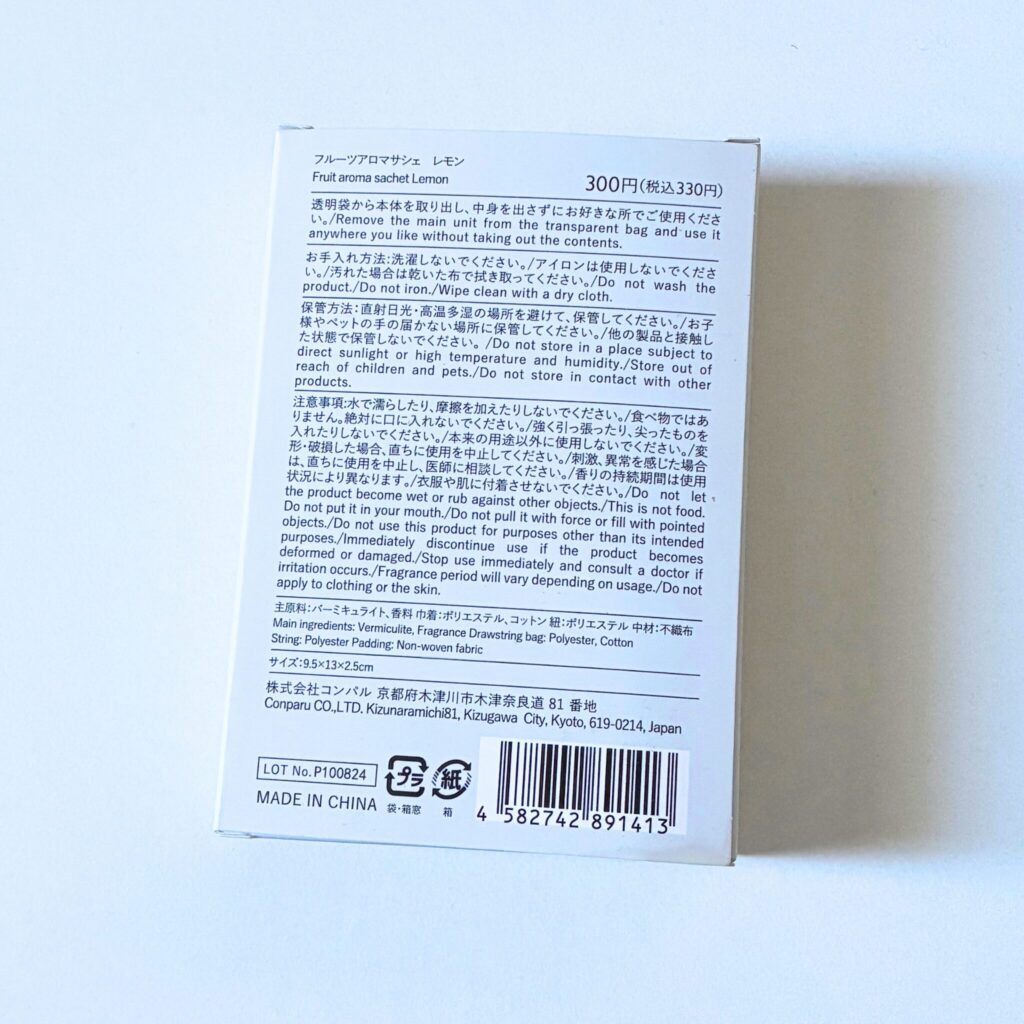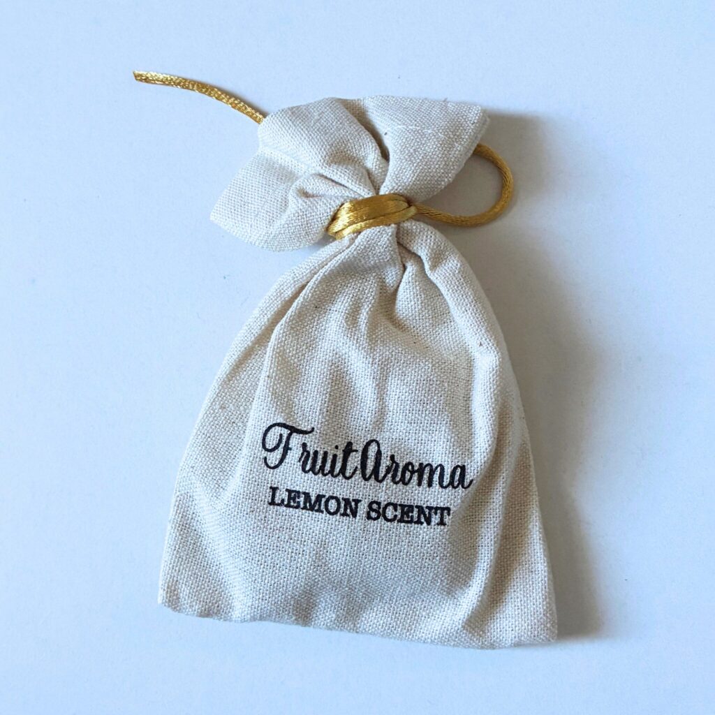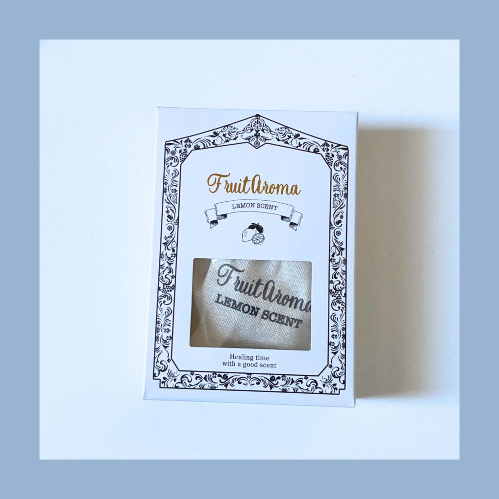 前回の吊り下げタイプのアロマに引き続き、今回もダイソーの上位ライン「THREEPPY(スリーピー)」で見つけた、フルーツアロマサシェ(レモン)。